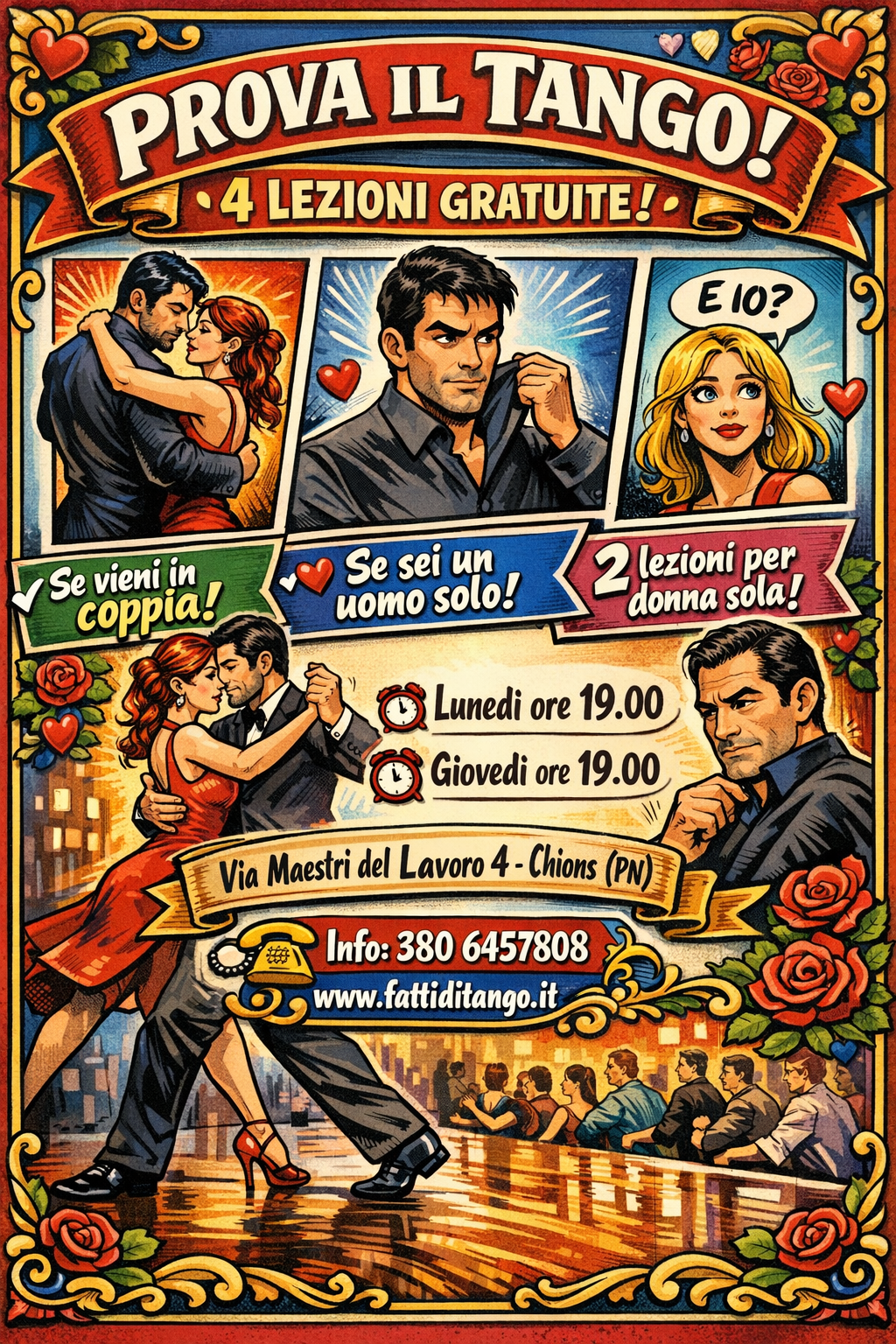 Non è obbligatorio avere un partner per partecipare! Porta solo la tua voglia di divertirti e lasciati conquistare dal fascino del tango.