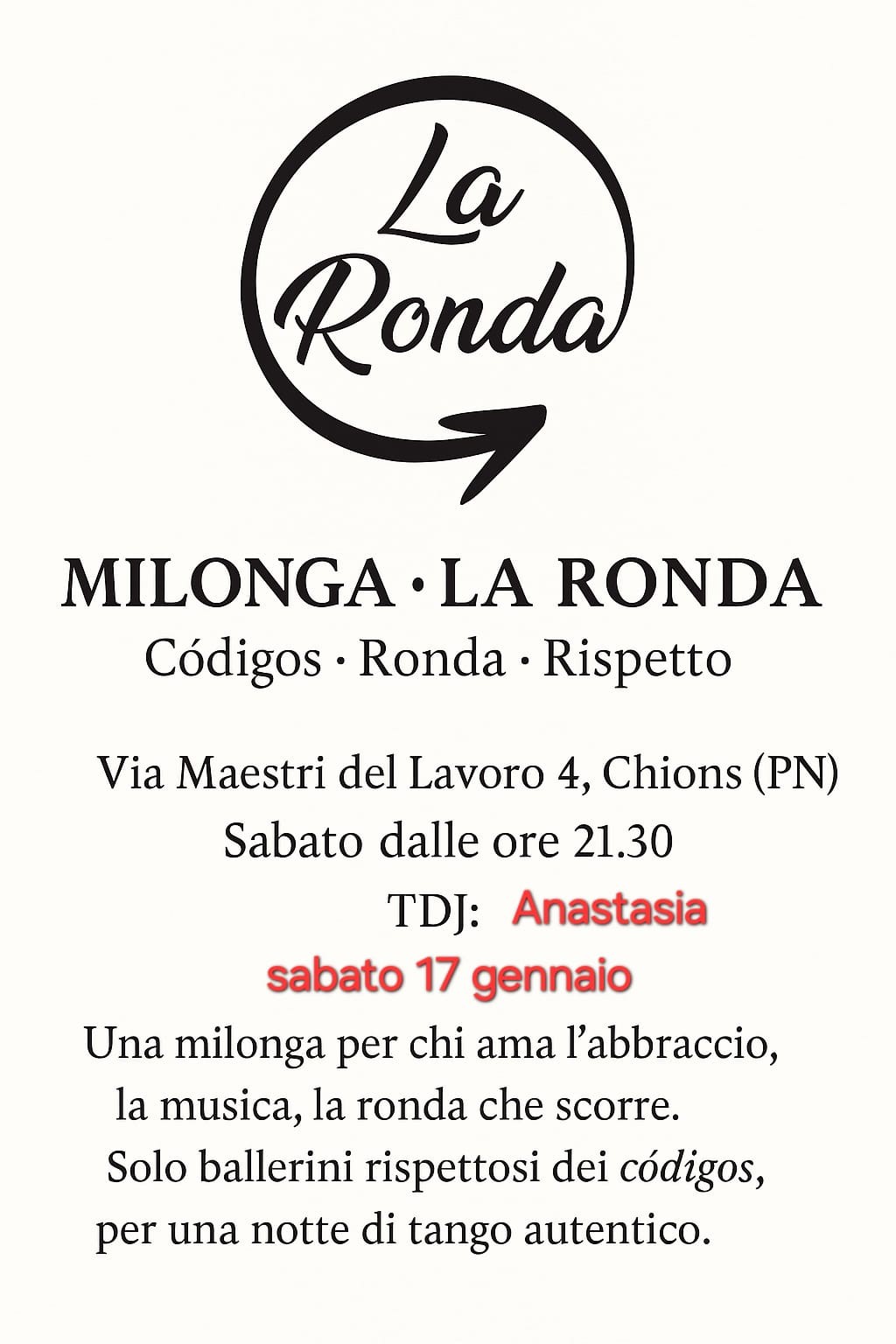 Per il 17 gennaio con tj Anastasia