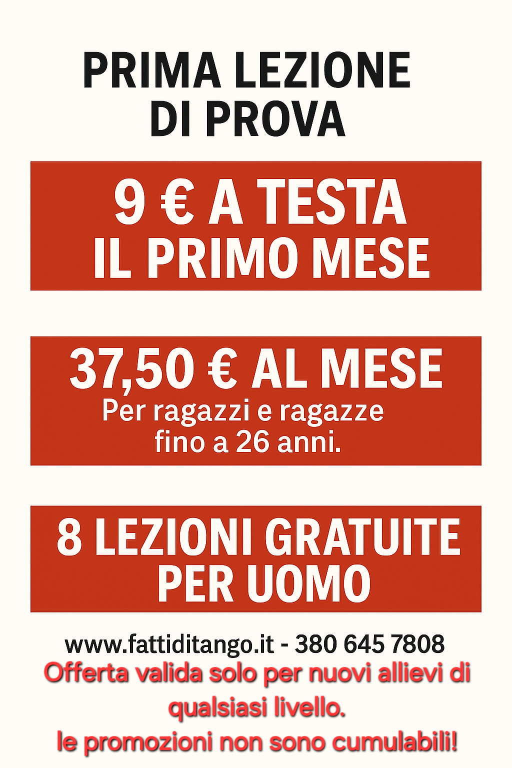 Vieni in coppia? Lui 8 lezioni gratuite e lei 150 € 8 lezioni.